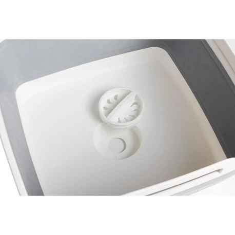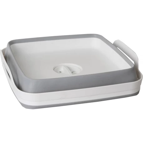 Lavello pieghevole con maniglie per il trasporto.