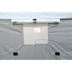 Tenda ripostiglio con classico tetto a falde realizzato in tessuto spalmato su entrambi i lati. Tutte le cuciture del tetto sono nastrate.