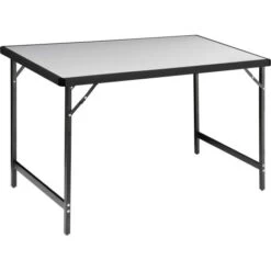 Robusto tavolo da campeggio con struttura e piano in alluminio.